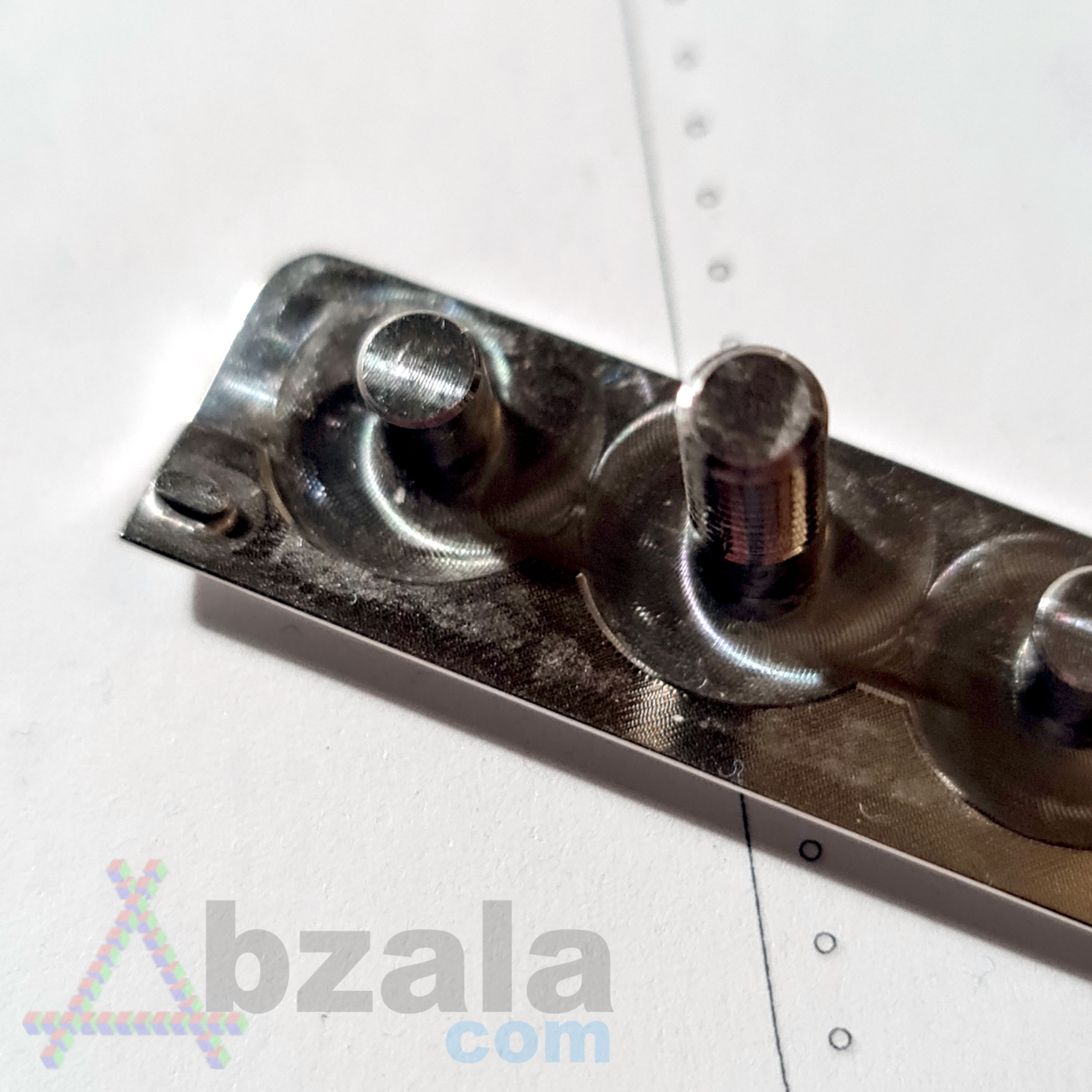 Продумана даже такая деталь: при переламывании лезвия пополам на краях лезвия остаются изгибы металла, чтобы это никак не сказывалось при позиционировании лезвия на нижней плите сделана выборка с бордюром.