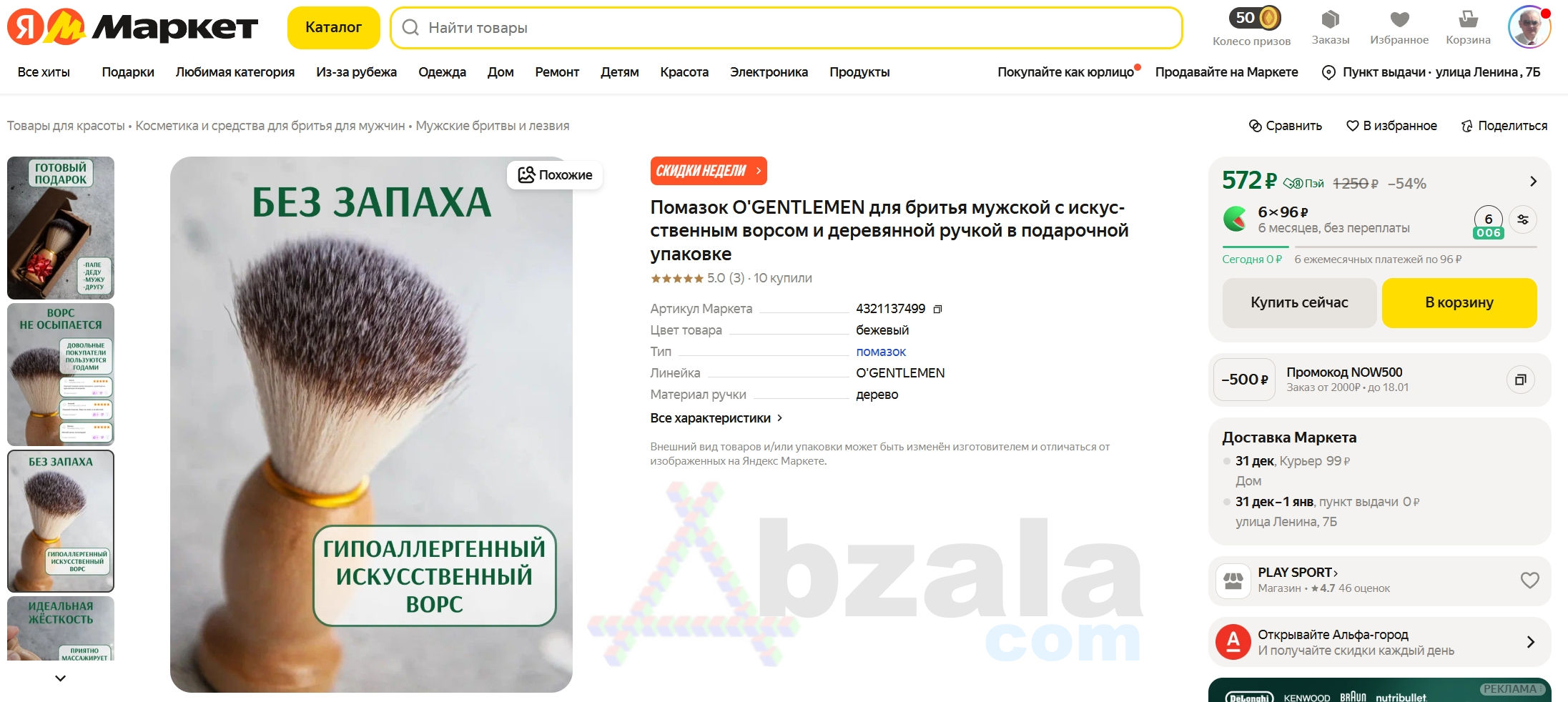 Заподозрив, что проблема в помазке, так как менять уже больше нечего было, я заказал набор, состоящий из подставки под станок и помазок, а также в нем был сам помазок из барсучьего волоса.