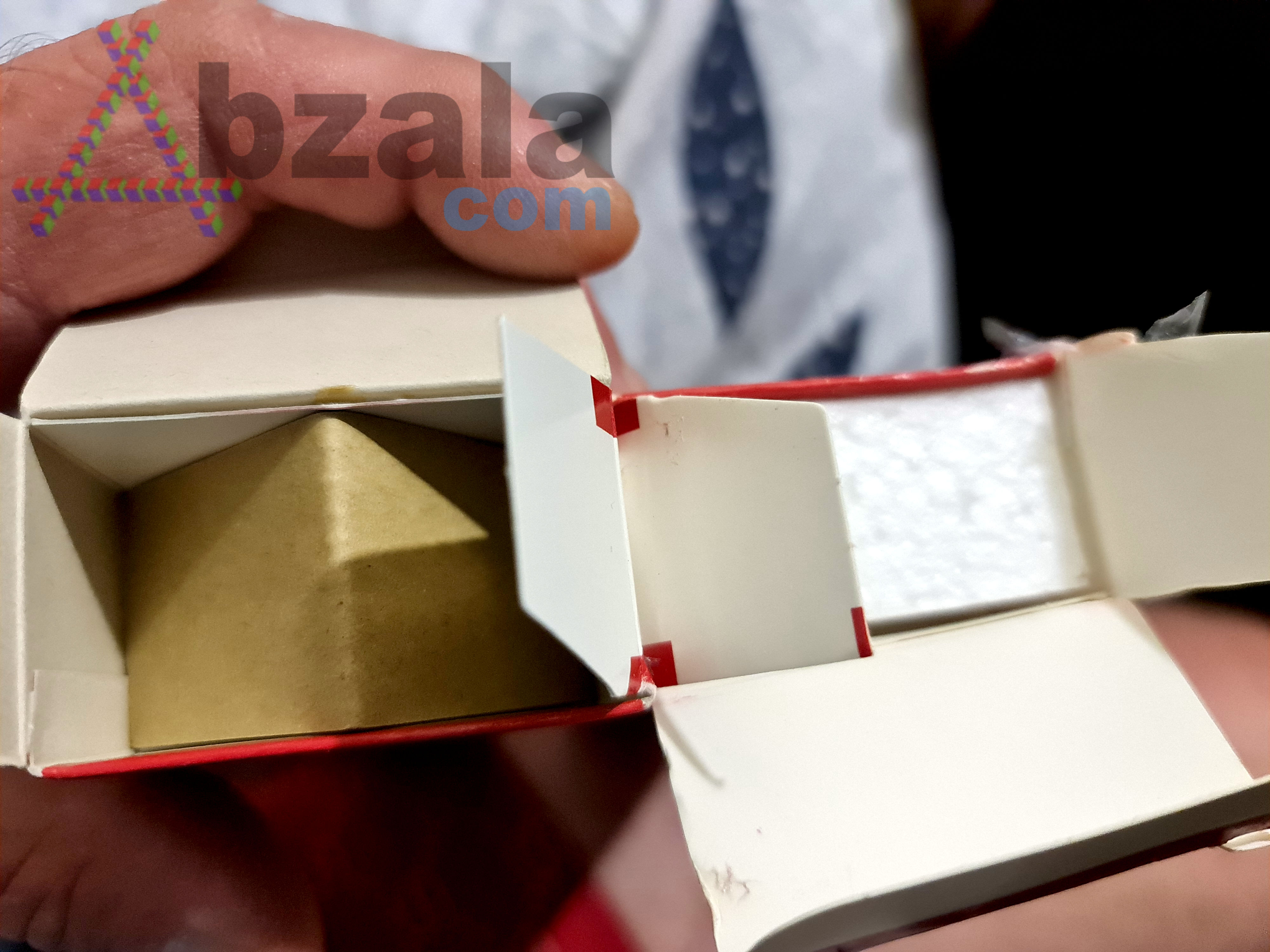 Further, if you open the bottom of the block, the original shock absorber is made of special pressed cardboard, while the Chinese replica has a piece of foam inserted.