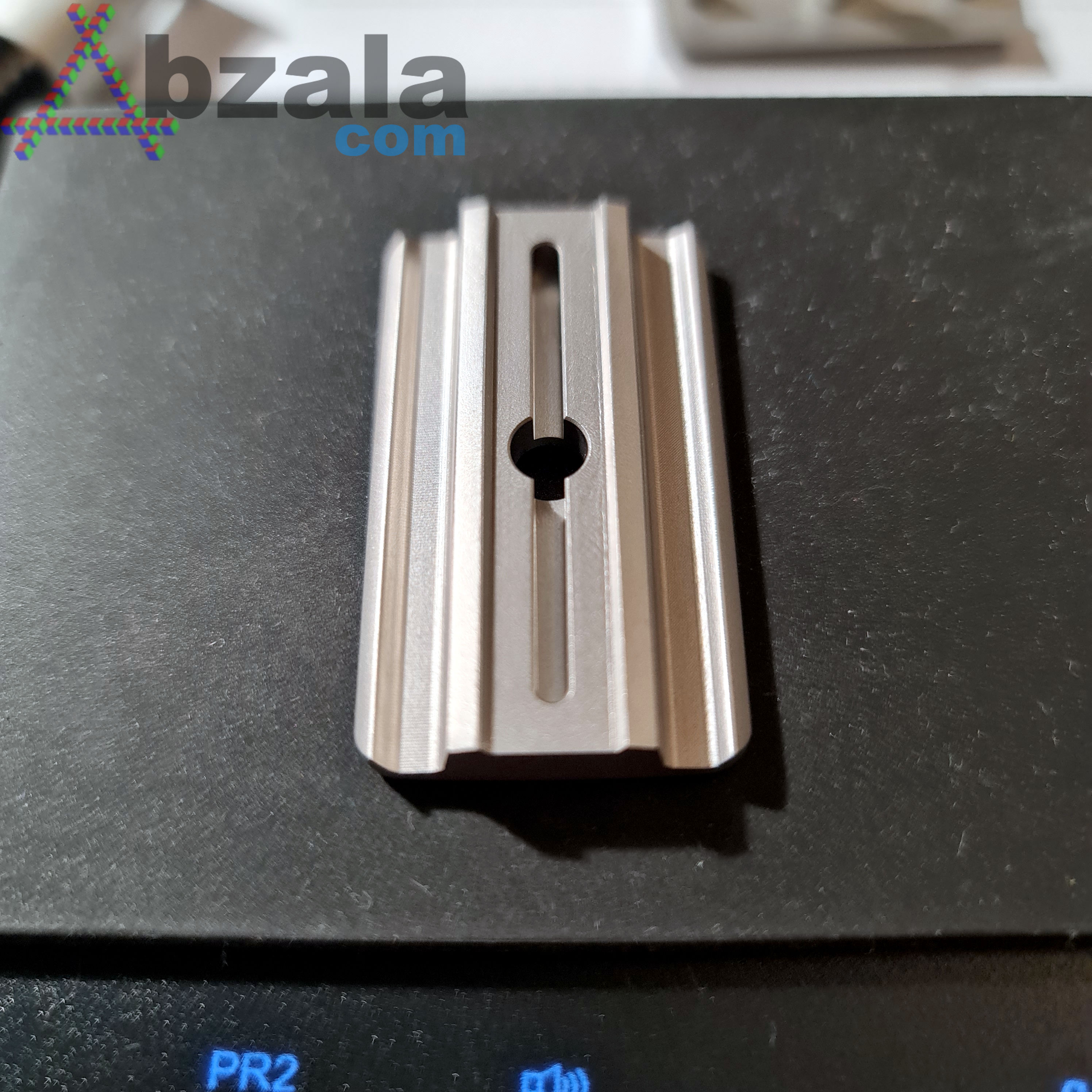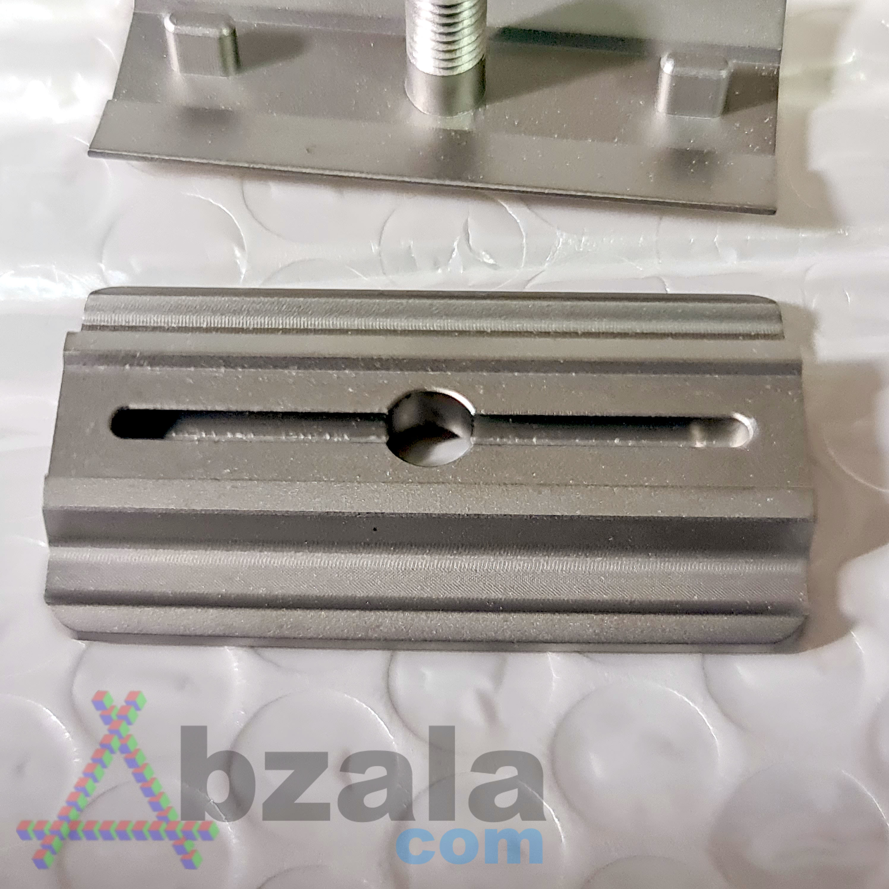 The top plate is attached to the bottom plate via a slot in the bottom plate. This ensures precise positioning of the plates relative to each other and the blade. The blade fits perfectly.