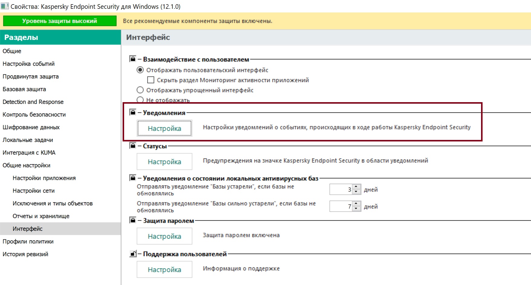 Настройка уведомлений в политиках Kaspersky Security Center на email