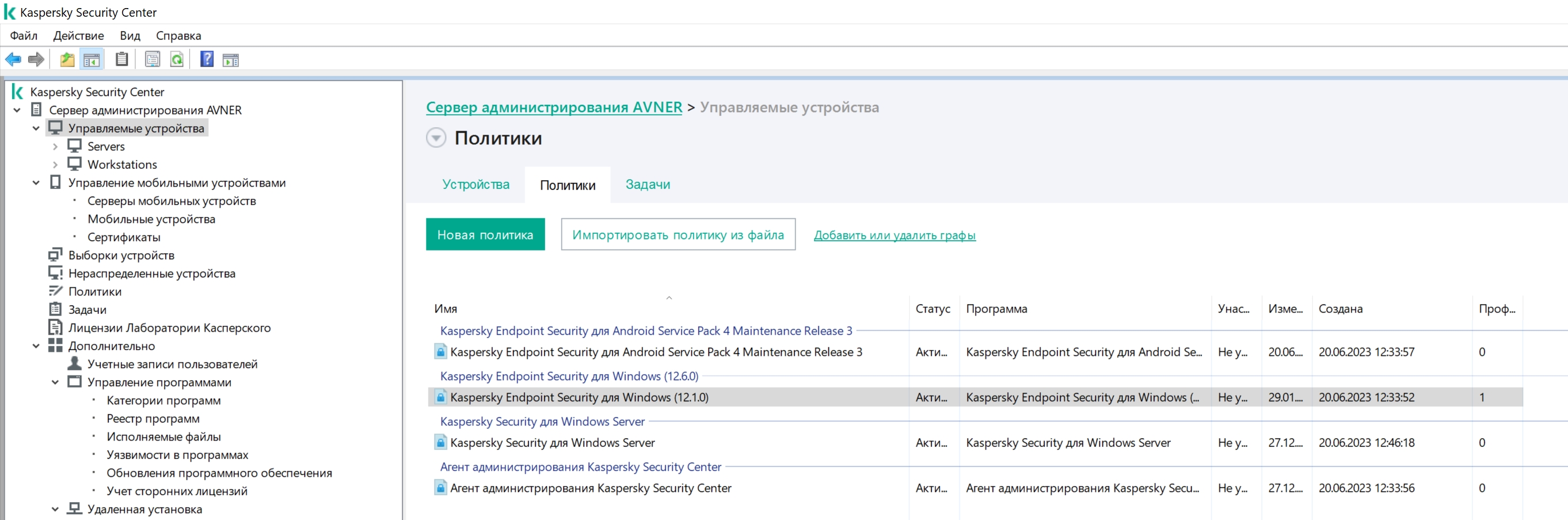 Управляемые устройства -> Политики и выбираем нужную политику.
