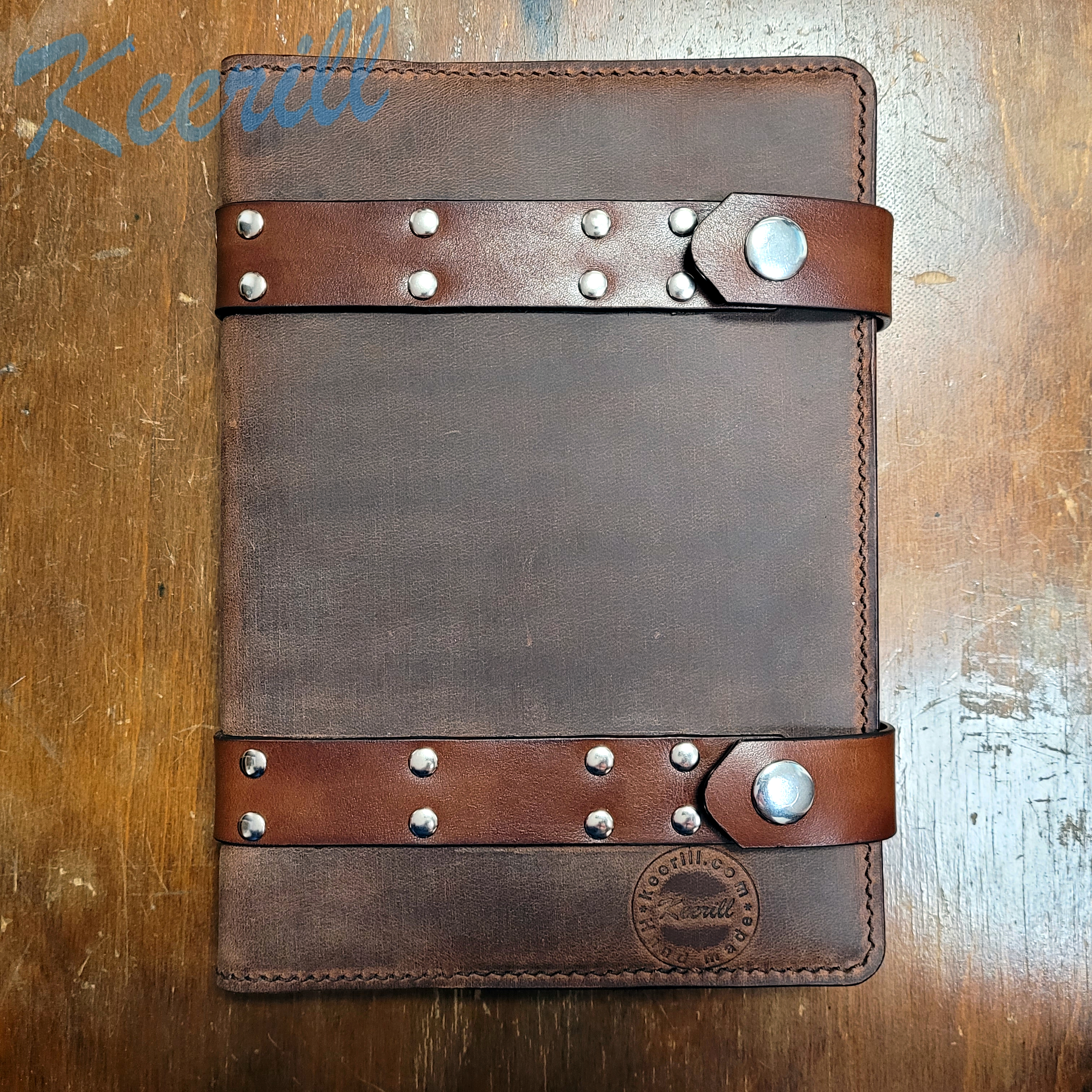 An interesting cover for a daily planner made of Italian crazy horse leather, vegetable tanned.