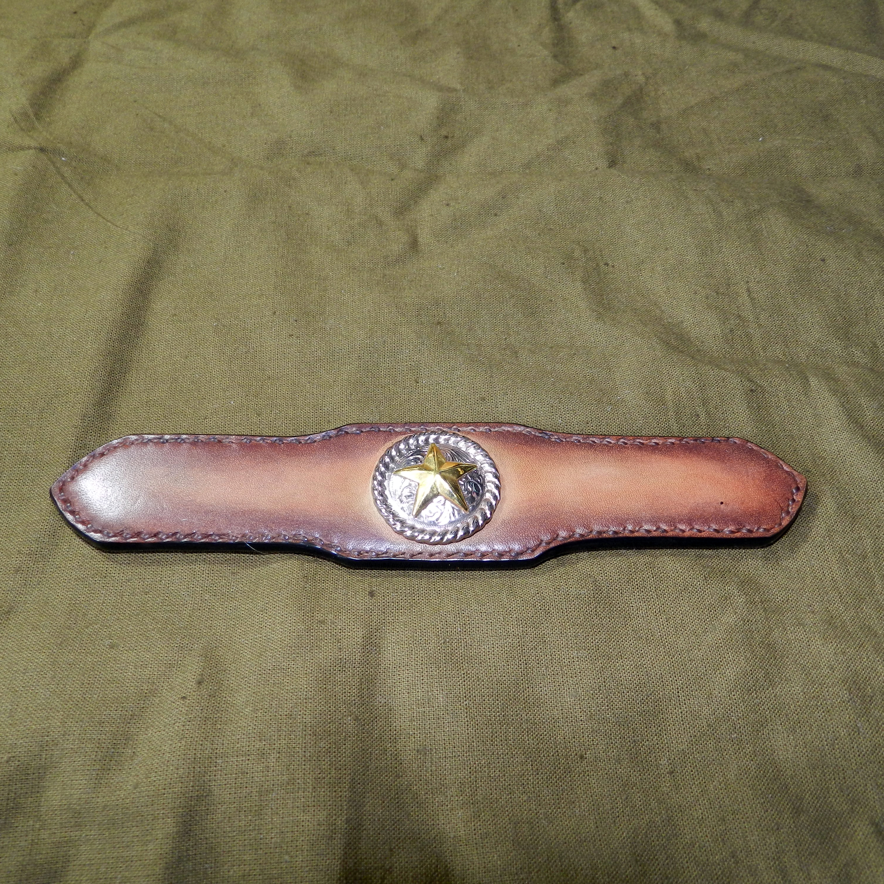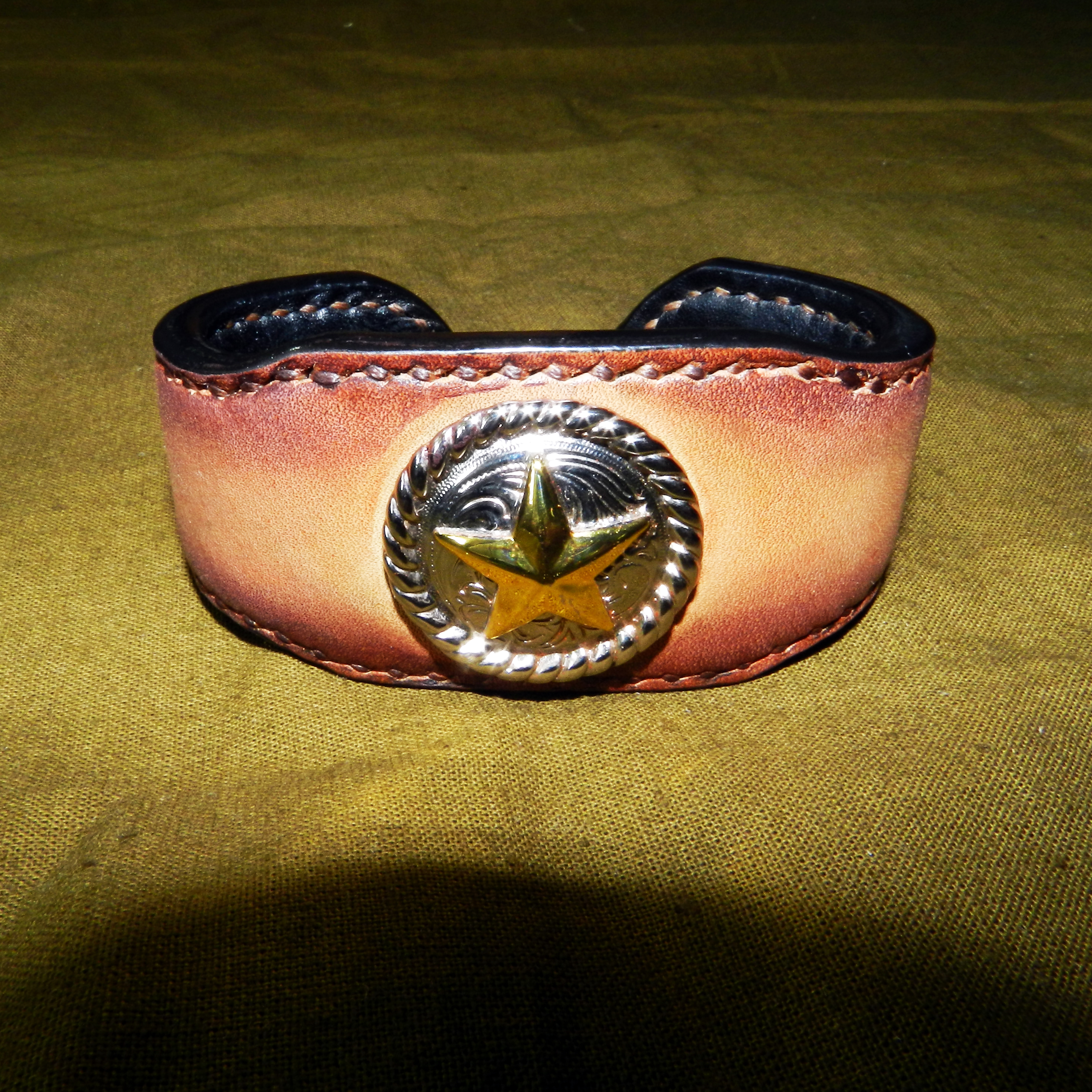 Если вы любите браслеты, то вы не останетесь равнодушным к данному изделию, украшенному посеребренному кончо со звездой с позолотой.