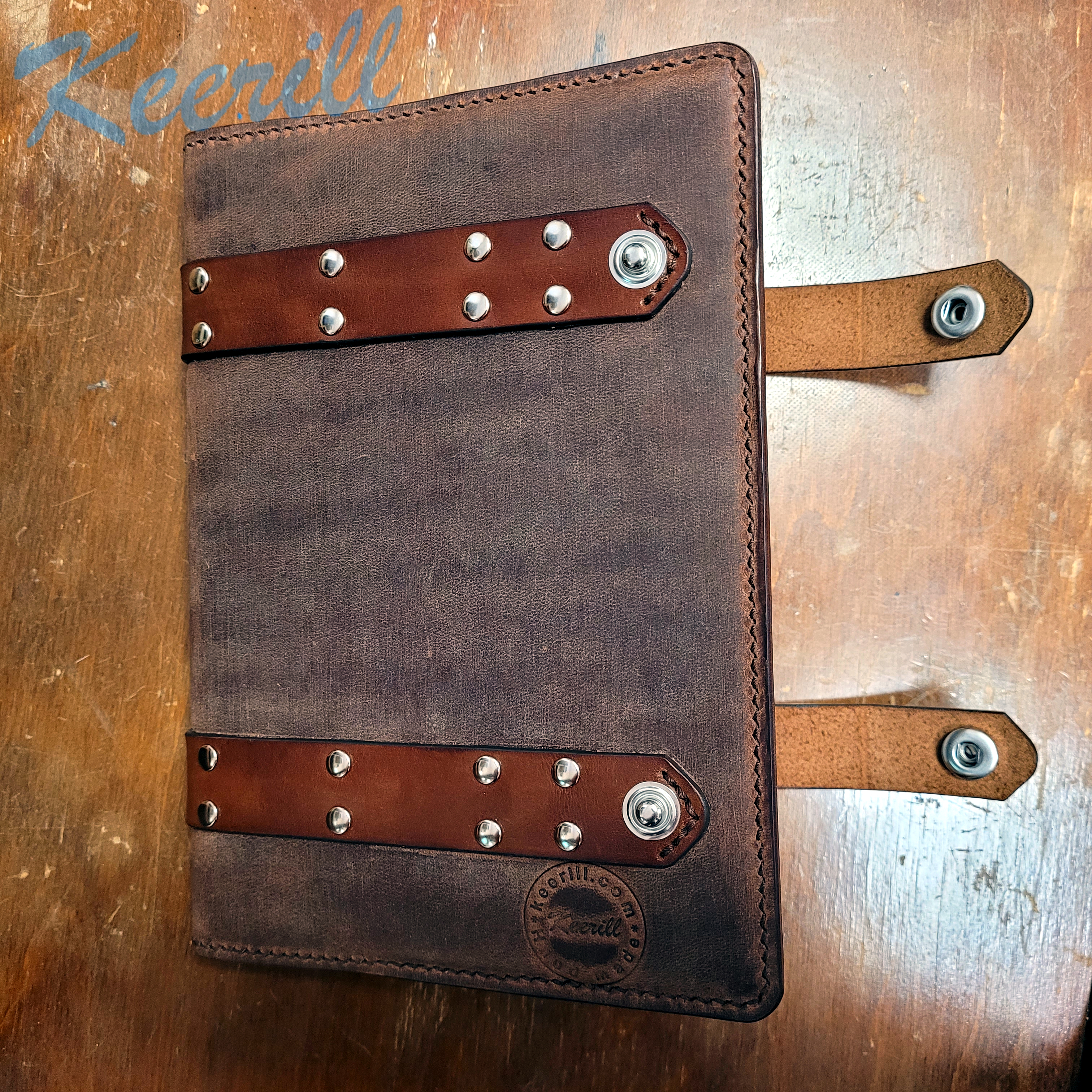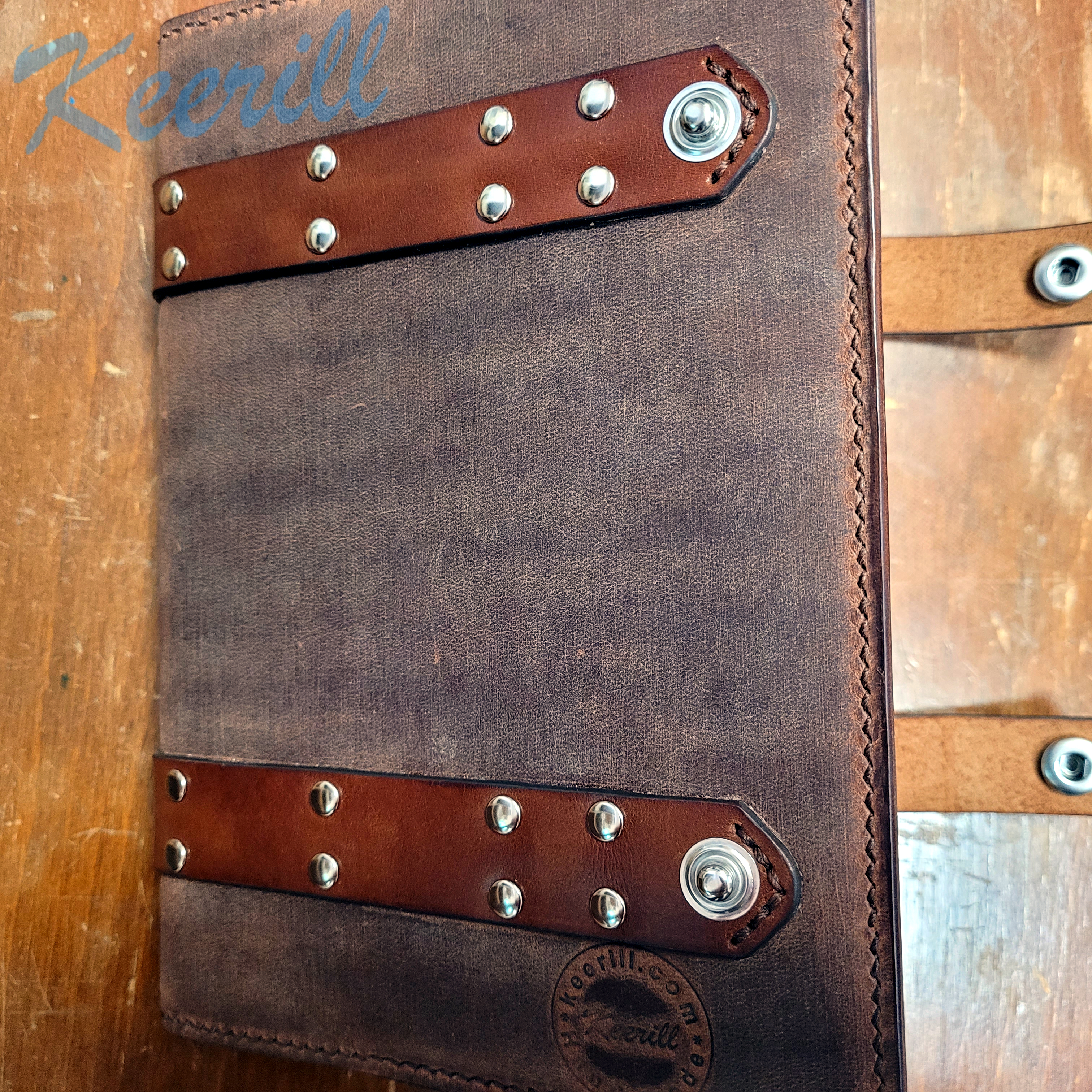 Интересная обложка для ежедневника из итальянской кожи крейзи хорс растительного дубления.