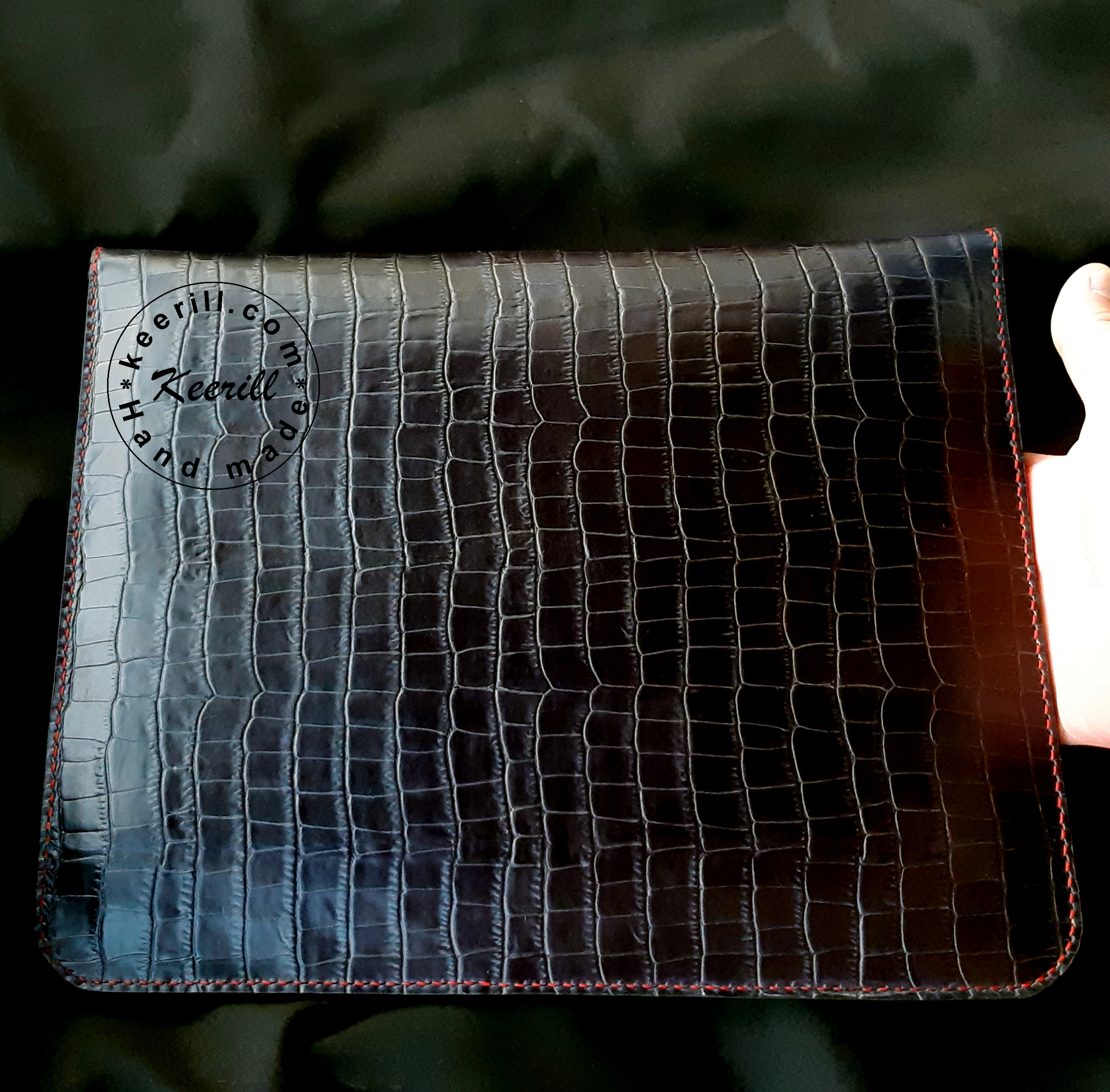 Полностью ручная работа. Ручной шов, то есть стежок за стежком вручную, без применения швейной машины. Ручной рез выкройки без вырубных форм.
