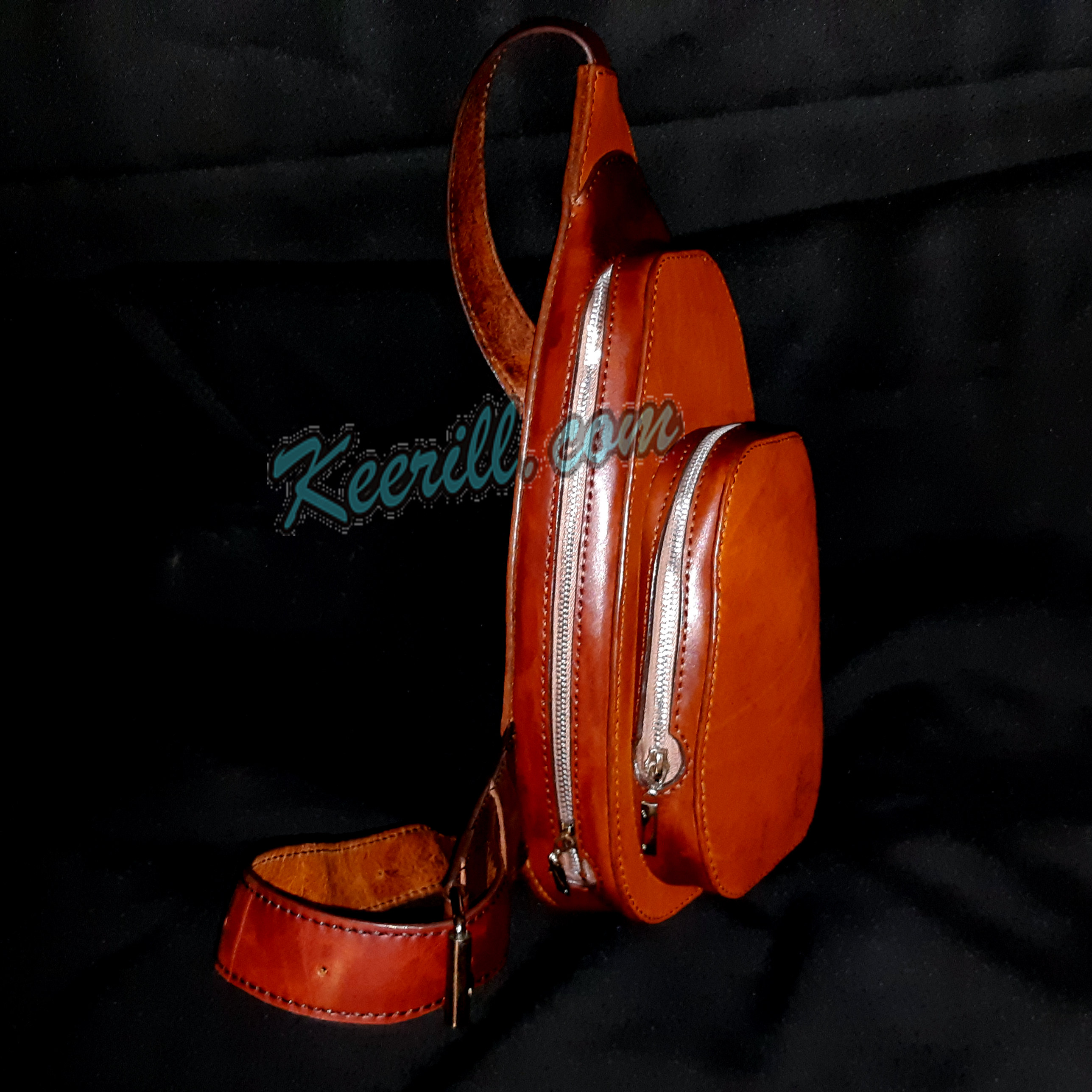 Кожаная сумка стропа. Небольшая сумка слинг на ремне, для ношения на спине или груди.