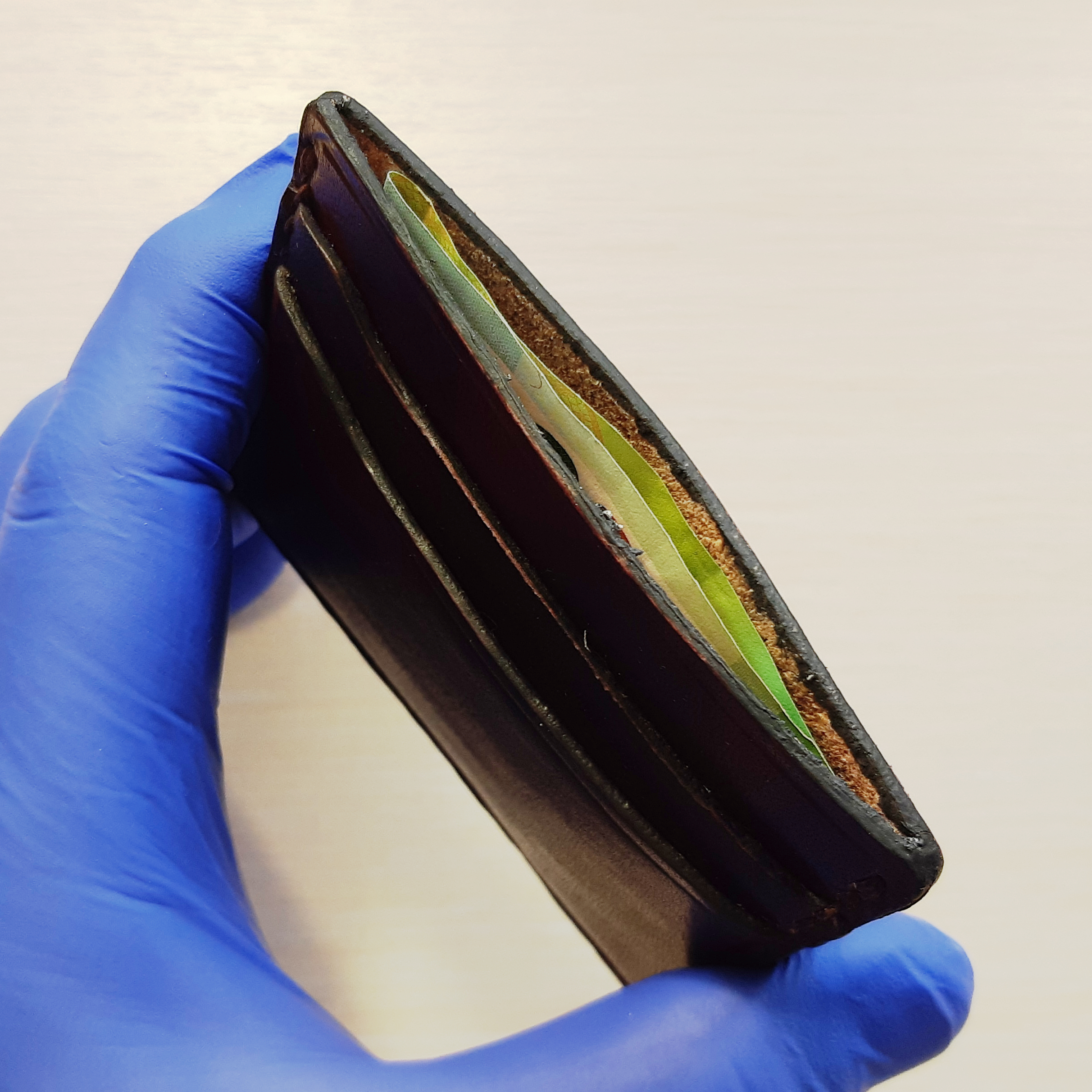 Один из первых моих кошельков из итальянской кожи, 2020 год.