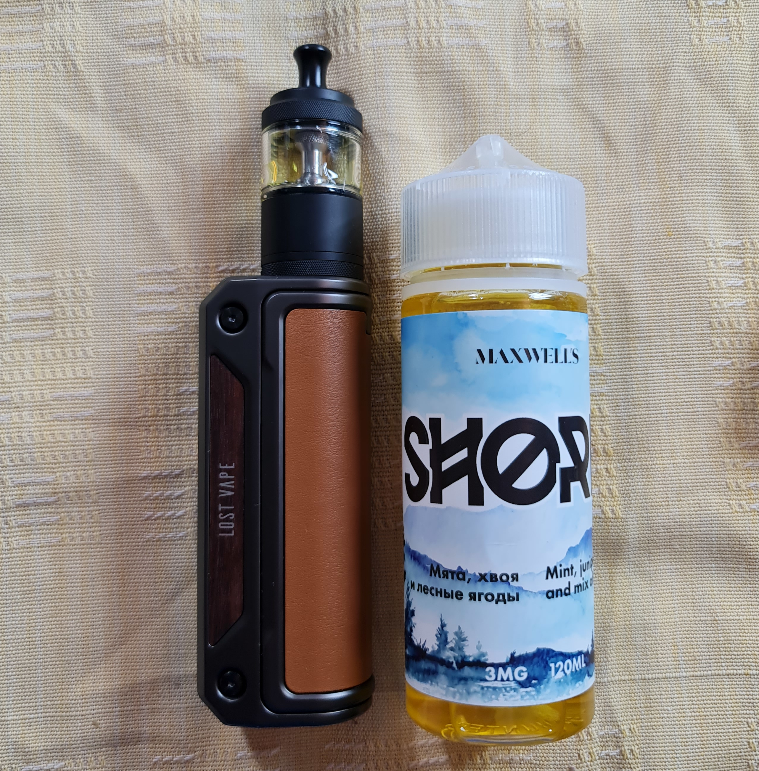 Поэтому очень слабый вкус жидкости можно отнести к тому, что он просто выветрился, но сам вкус отличный - интересное сочетание вкусов хвои, мяты и ягод, с бОльшим упором на хвою.