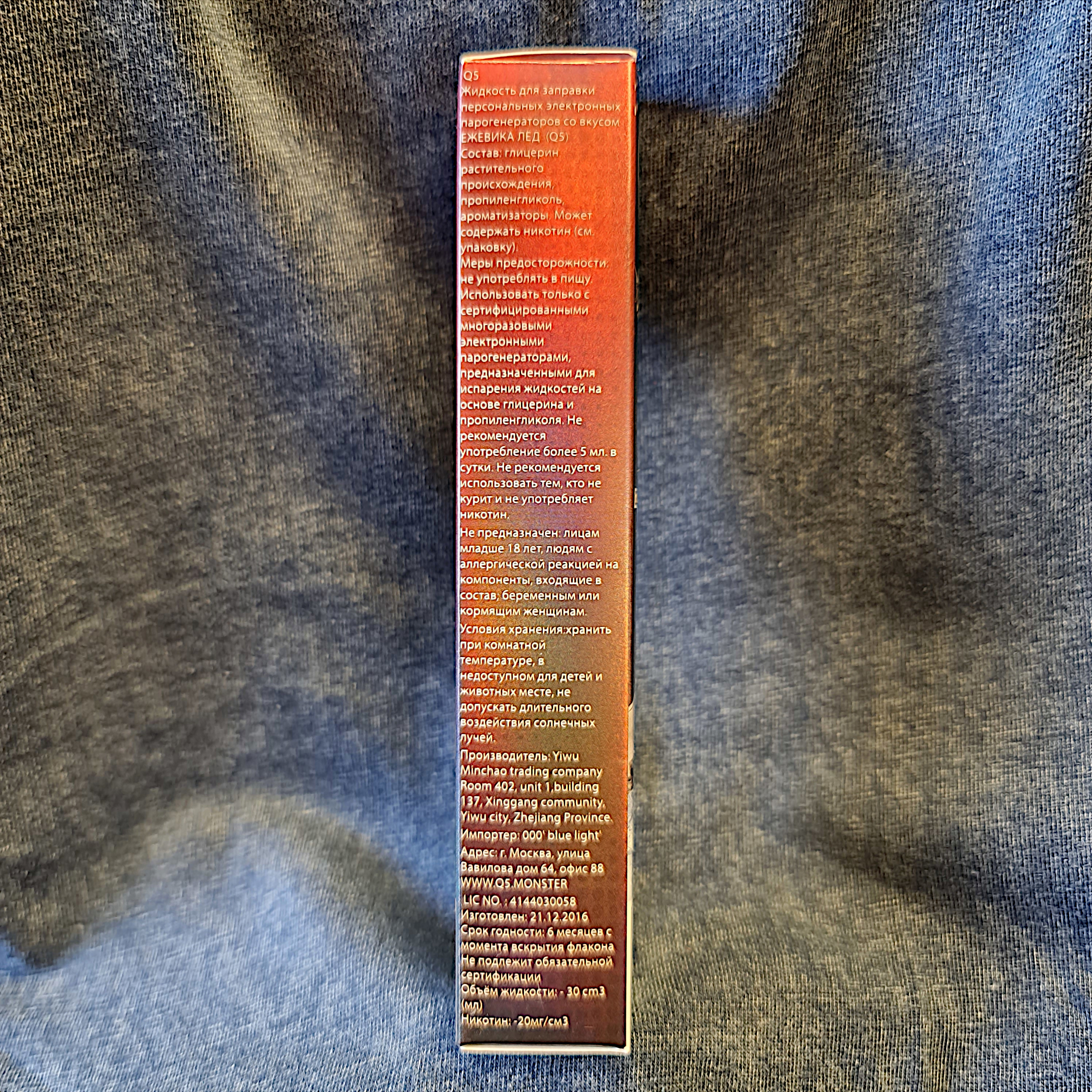 Сказать, что жидкость вкусная - это ничего не сказать, она яркая, насыщенная. Вкус просто не может оставить равнодушным. Смесь стронг (смесь солевого и щелочного никотинов) не перебивает вкус, а холод ярко подчеркивает вкус. Воздействие на горло мягкое, а не раздирающее горло TX из-за плохого никотина, как у некоторых производителей.