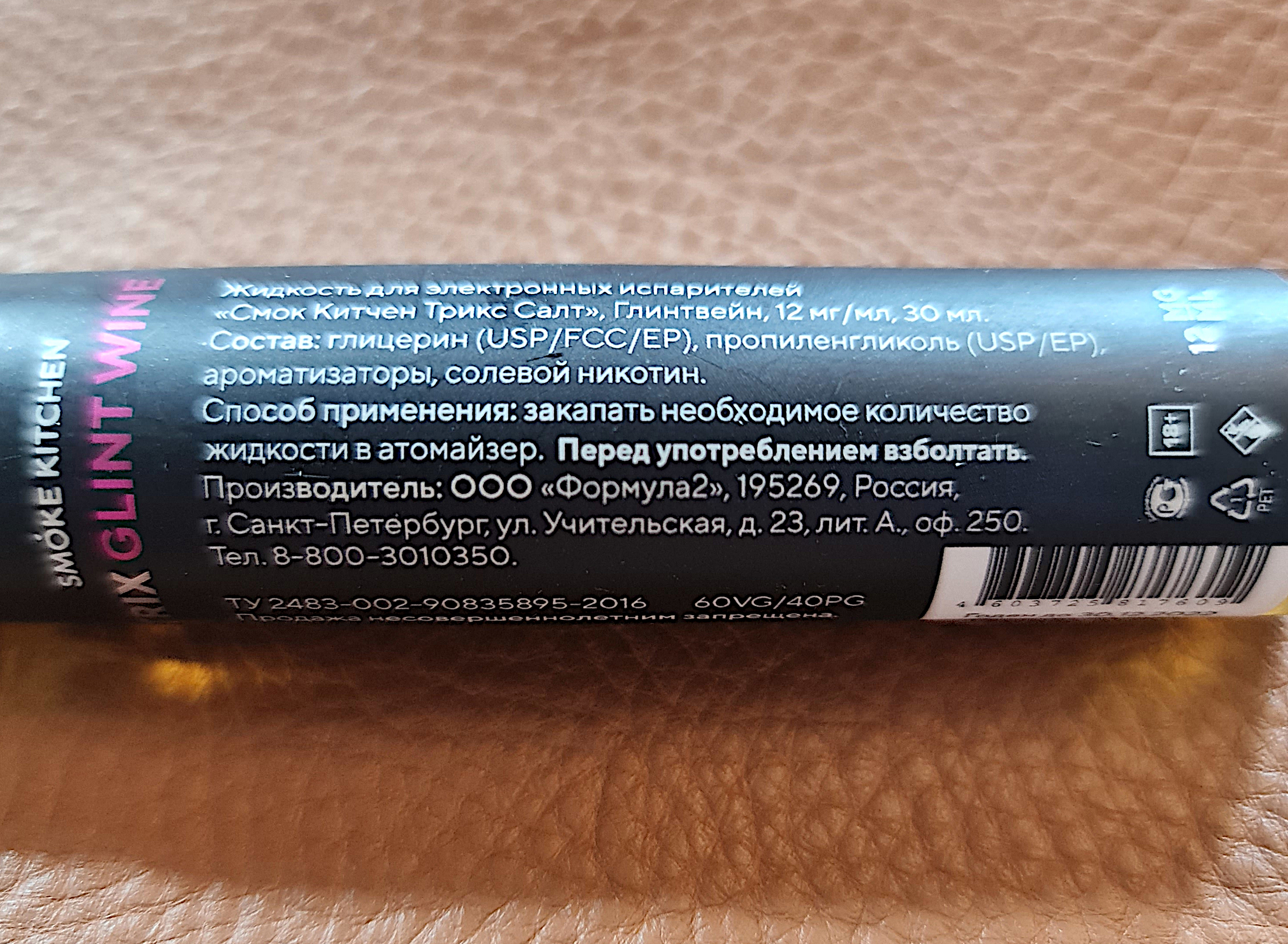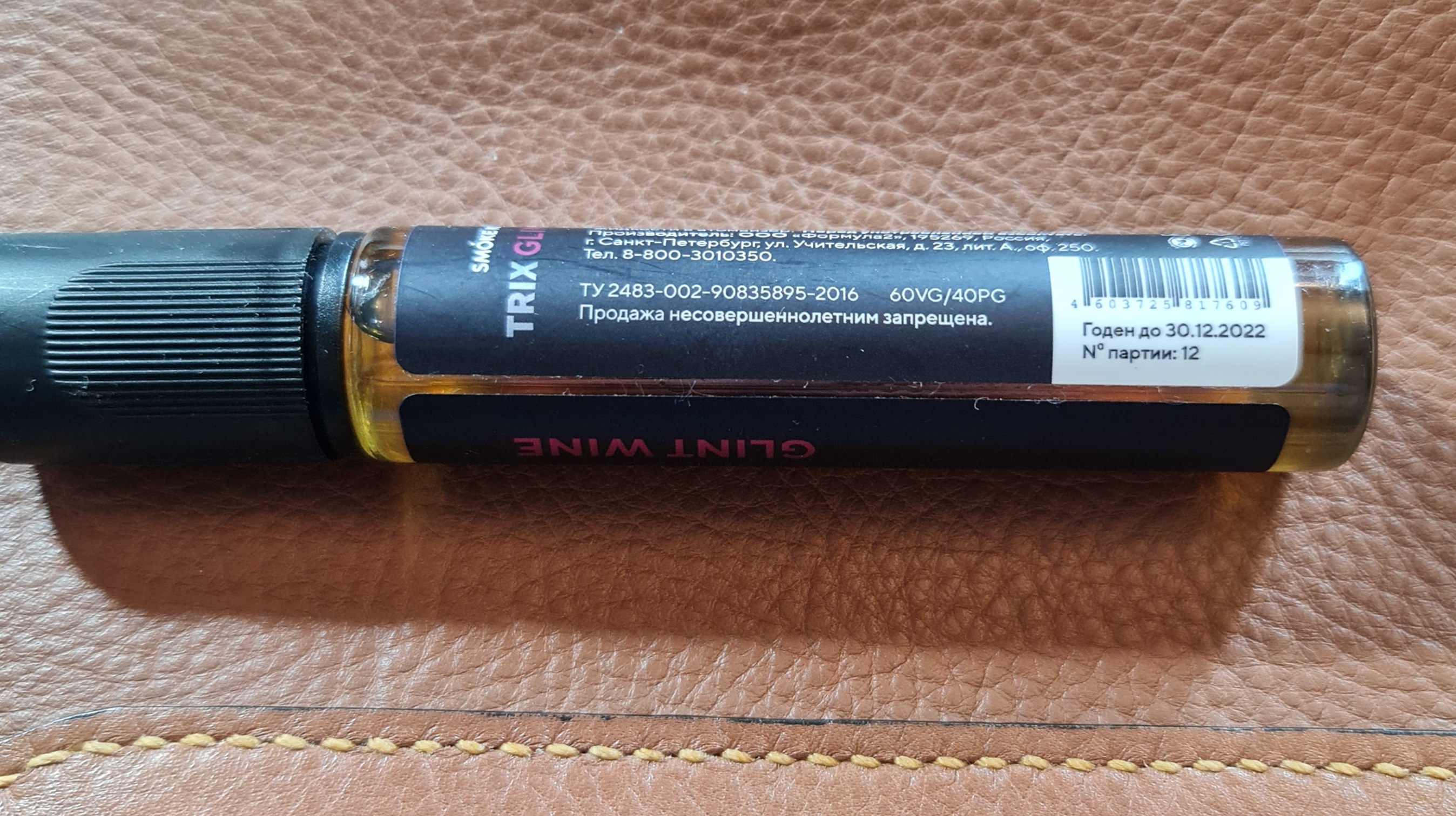 Знаменитая жидкость серии Trix со вкусом Glint Wine от Smoke kitchen в солевом варианте.